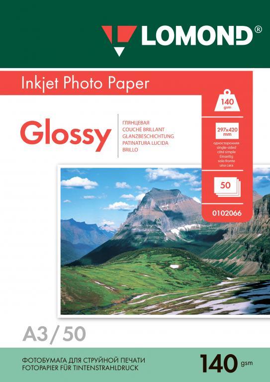 Фотобумага глянцевая односторонняя A3, 140 г/м, 50 л. (0102066) (Lomond)