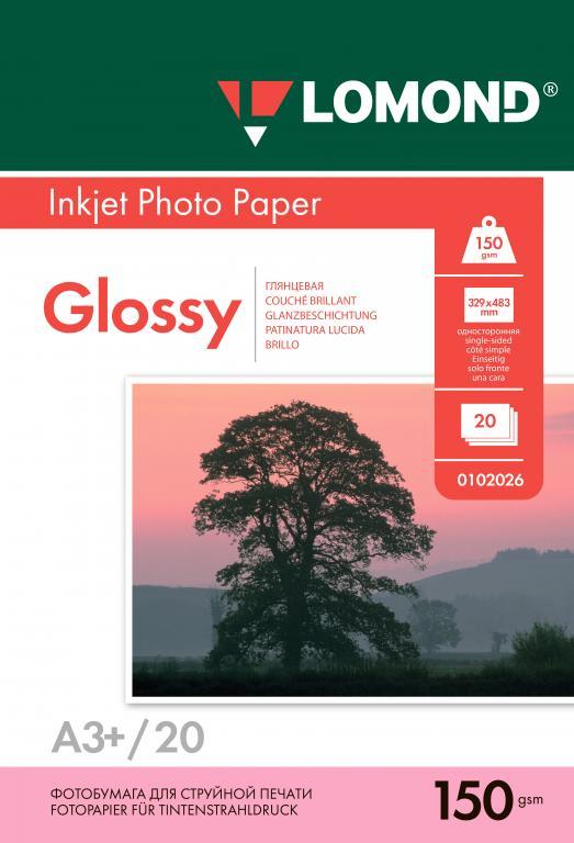 Фотобумага глянцевая односторонняя A3+, 150 г/м, 20 л. (0102026) (Lomond)