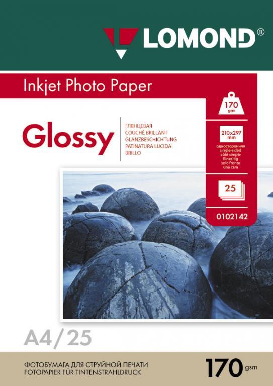 Фотобумага глянцевая односторонняя A4, 170 г/м, 25 л. (0102143) (Lomond)