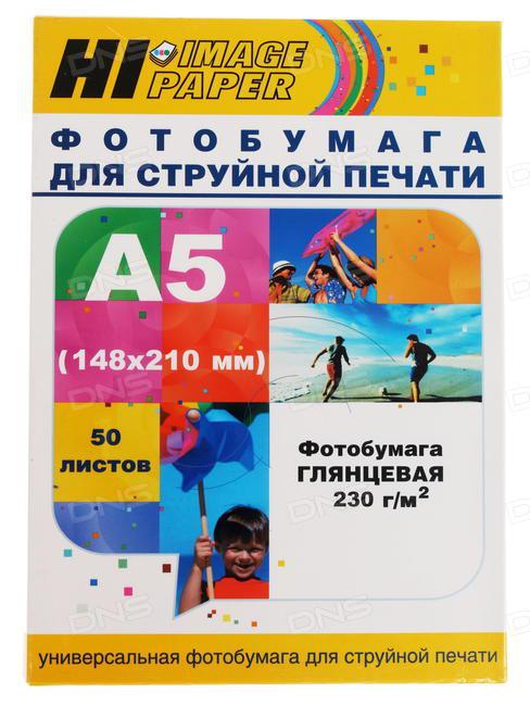 Фотобумага глянцевая односторонняя A5 (148х210) 230 г/м 50л (A21189) (Hi-image paper)