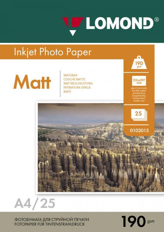 Фотобумага матовая двусторонняя A4, 190 г/м, 25 л. (0102036) (Lomond)