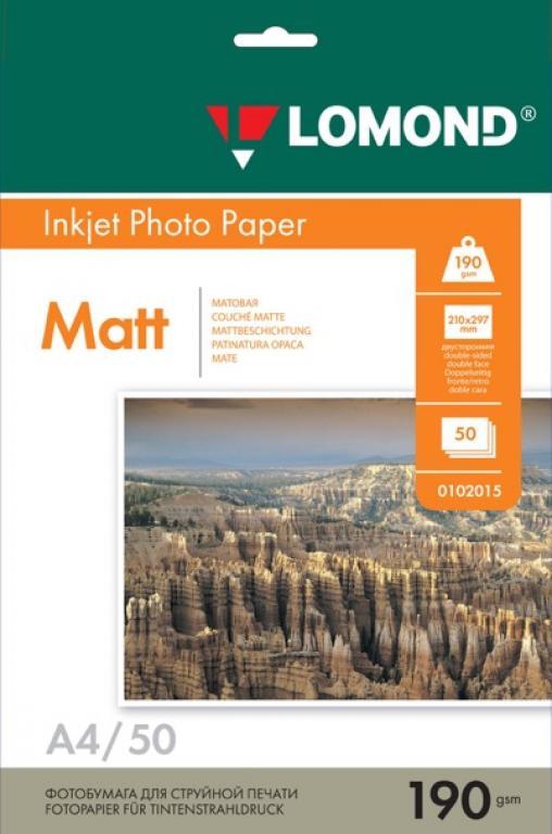 Фотобумага матовая двусторонняя A4, 190 г/м, 50 л. (0102015) (Lomond)