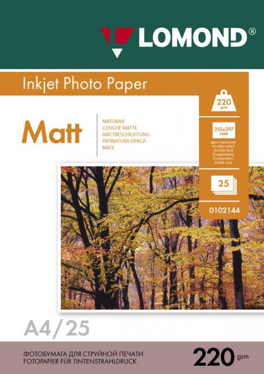 Фотобумага матовая двусторонняя A4, 220 г/м, 25 л. (0102148) (Lomond)