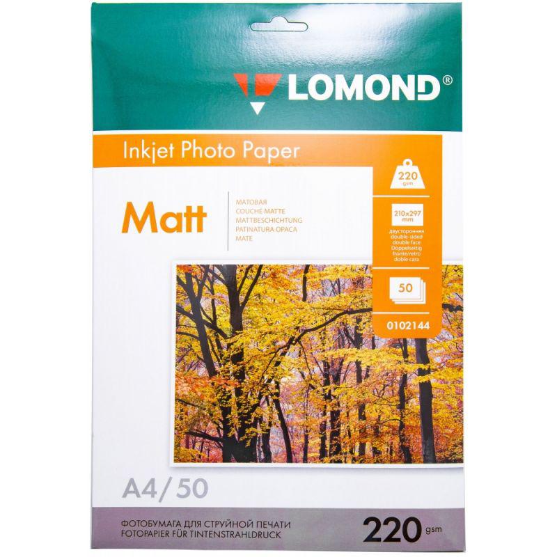 Фотобумага матовая двусторонняя A4, 220 г/м, 50 л. (0102144) (Lomond)