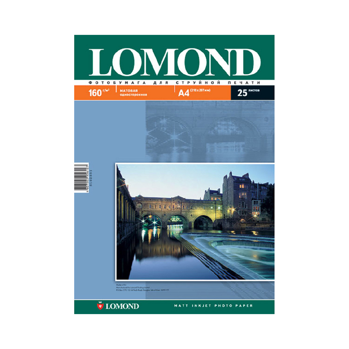 Фотобумага матовая односторонняя A4, 160 г/м, 25 л. (0102031) (Lomond)