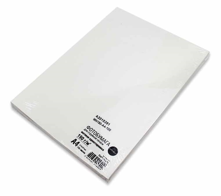 Фотобумага матовая односторонняя A4, 190 г/м, 100л. (A2015391) (NetProduct)
