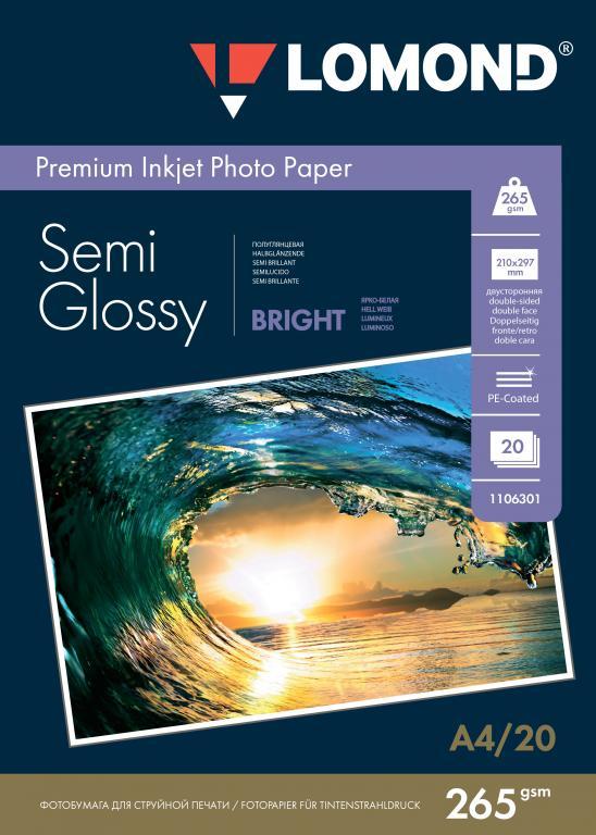 Фотобумага полуглянцевая двусторонняя A4, 265 г/м, 20 л. (1106301) (Lomond) Bright