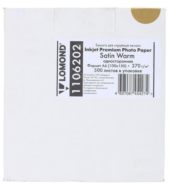 Фотобумага сатин односторонняя 10x15, 270 г/м, 500 л. (1106202) Lomond) Warm