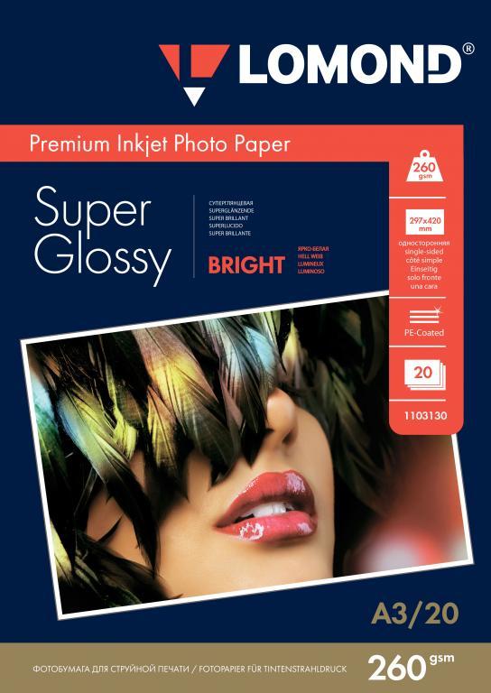 Фотобумага суперглянец односторонняя A3, 260 г/м, 20 л. (1103130) (Lomond) Bright