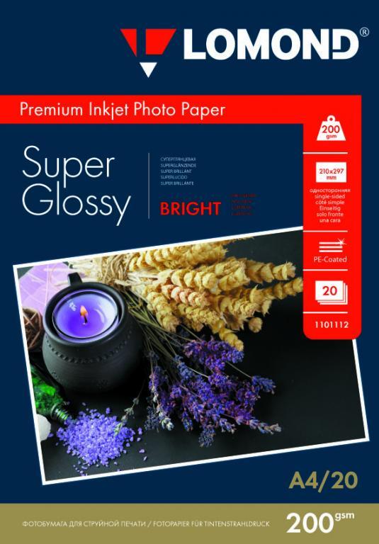 Фотобумага суперглянец односторонняя A4, 200 г/м, 20 л. (1101112) (Lomond) Bright