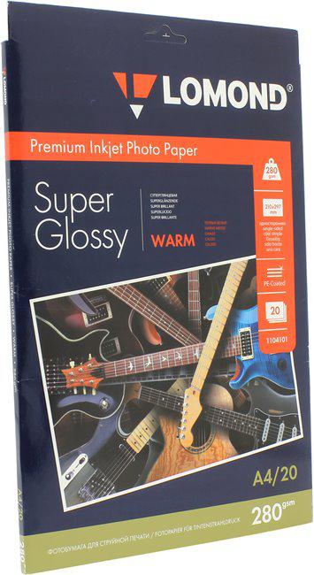 Фотобумага суперглянец односторонняя A4, 280 г/м, 20 л. (1104101) (Lomond)