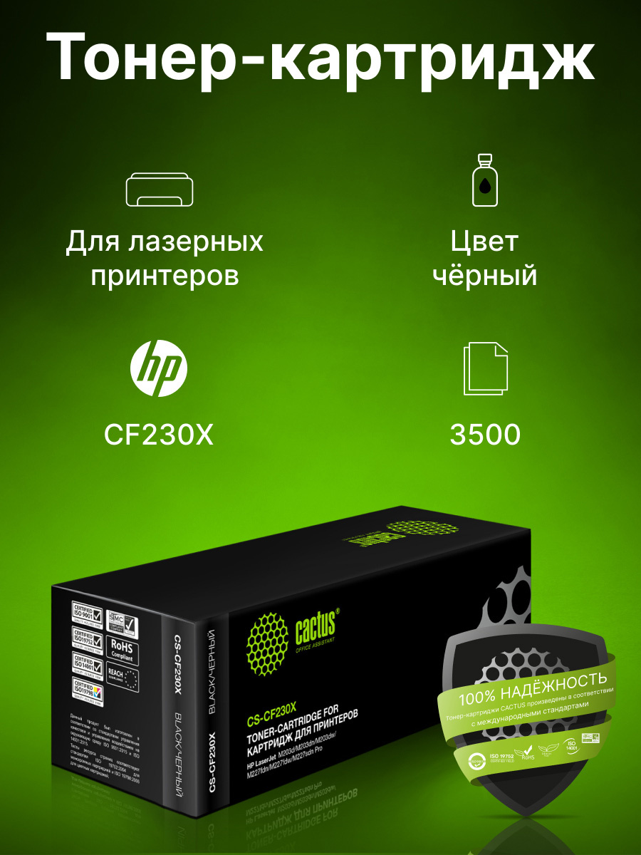 Картридж лазерный Cactus CS-CF230X CF230X черный (3500стр.) для HP LJ 203/227
