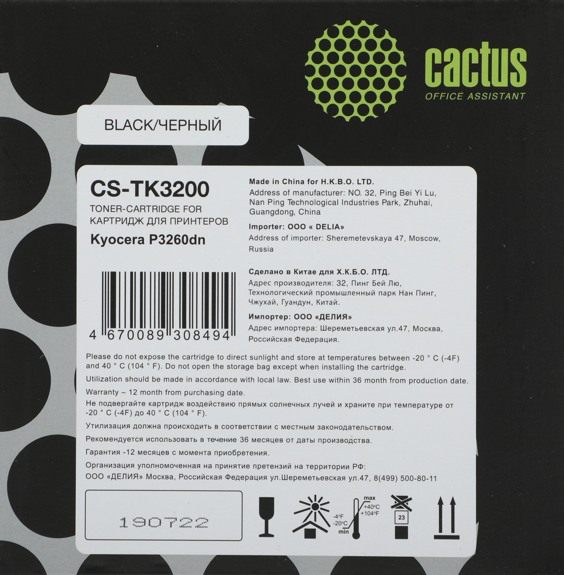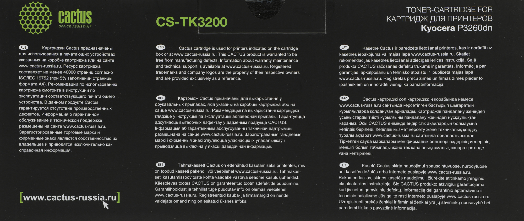 Картридж лазерный Cactus CS-TK3200 TK-3200 черный (40000стр.) для Kyocera P3260dn