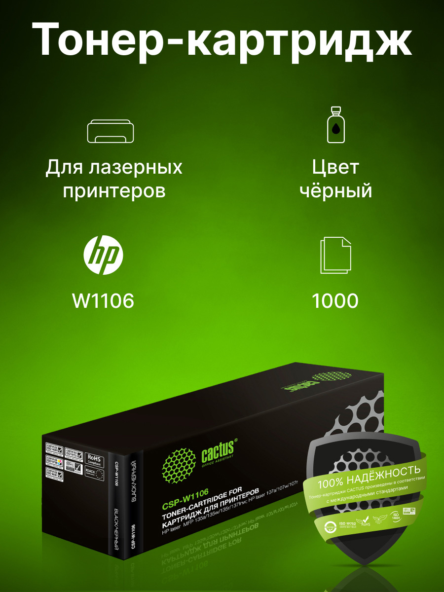 Картридж лазерный Cactus CSP-W1106 черный (1000стр.)