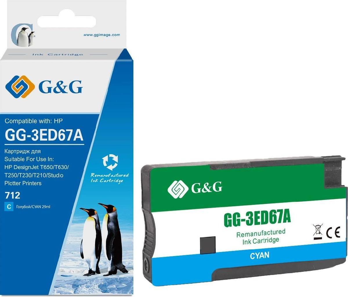 Картридж струйный G&G GG-3ED67A 712 голубой (29мл) для HP DesignJet T650/T630/T250/T230/T210/Studio Plotter Printers