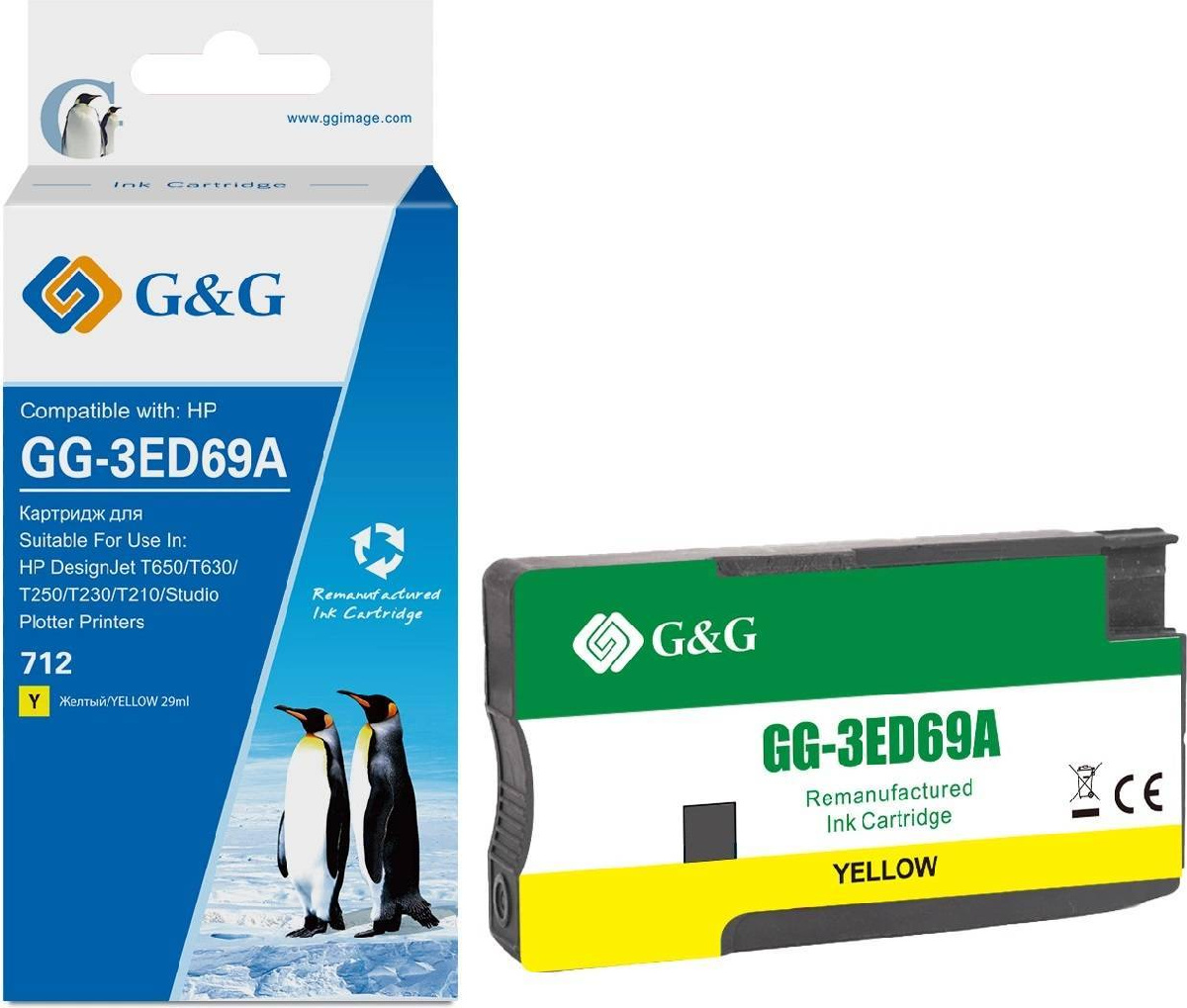 Картридж струйный G&G GG-3ED69A 712 желтый (29мл) для HP DesignJet T650/T630/T250/T230/T210/Studio Plotter Printers