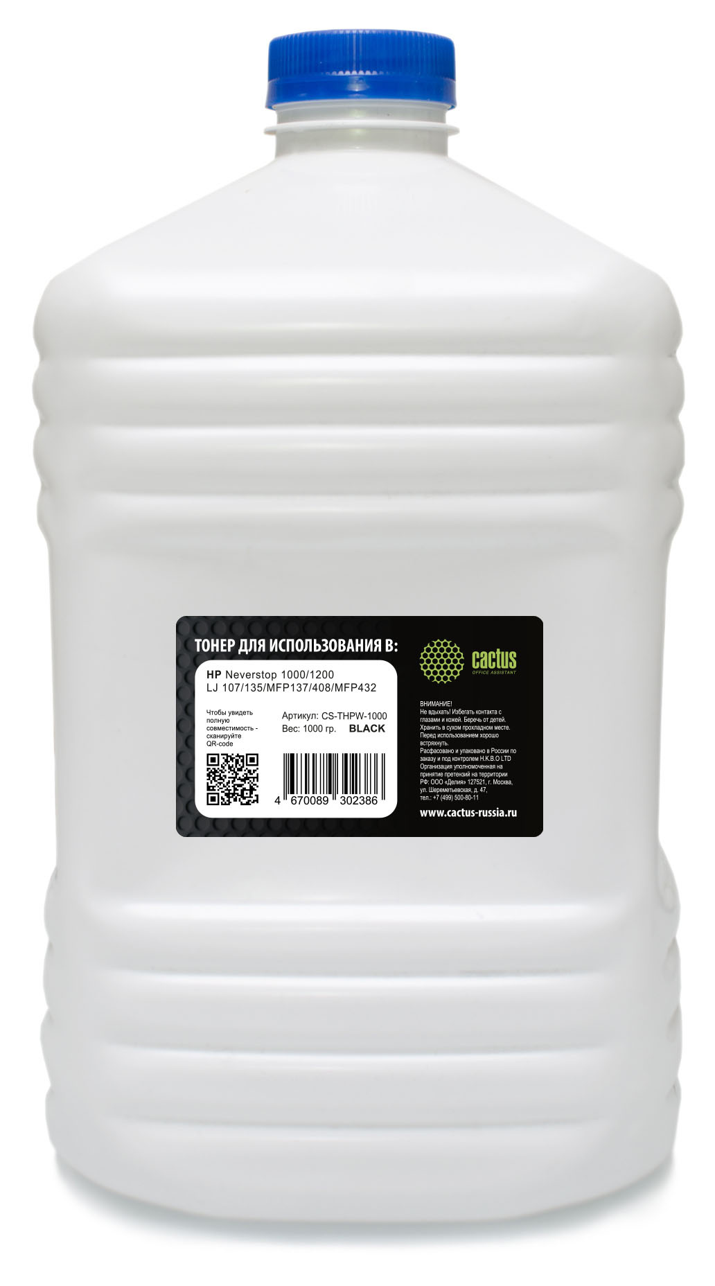 Тонер Cactus CS-THPW-1000 черный флакон 1000гр. для принтера HP W1106; Xerox 106R01487